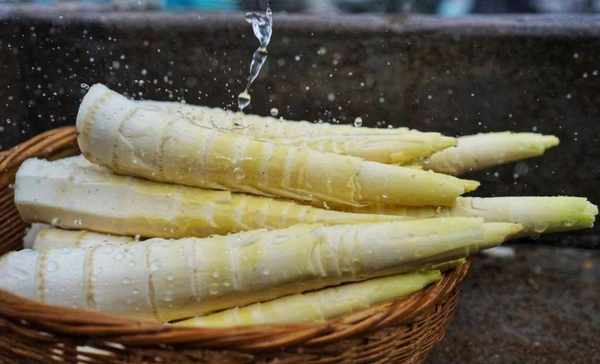 2,鍋裡燒開水,加一點點鹽,切好的春筍焯水,撈出控幹。
