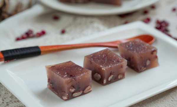 3:我們取少量煮過的紅豆水放到一個碗中,然後向裡面少量多次的加入玉米淀粉,並用勺子充分的攪拌均勻。煮好的紅豆放到一個容器中,將玉米淀粉水也倒進容器中,再放到蒸鍋上面蒸三十分鐘,這樣子美味的紅豆糕就算是大功告成啦!