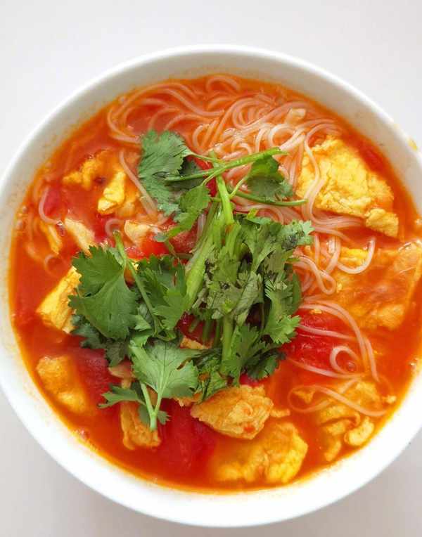 看到這碗西紅柿雞蛋米粉湯,我都忍不住流口水瞭,隻要食材搭配好,就算不放肉一樣很美味哦。西紅柿自帶酸甜口感,煸炒至軟爛出汁,再搭配雞蛋一起,然後再加上一大把香菜點綴,做法簡單卻很美味哦。而且香菜熱量很低,能幫助幫助人體排出身體垃圾,具有輔助減肥的效果哦。