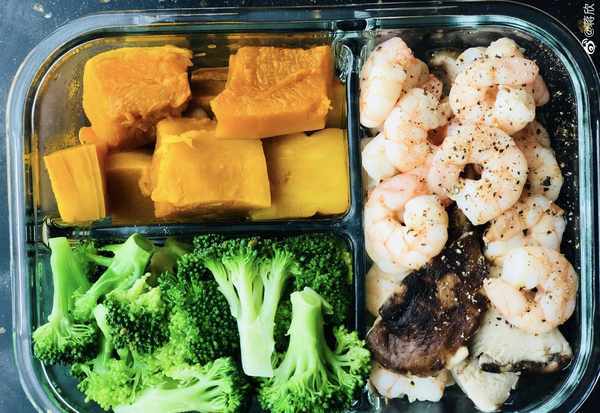 第二:水煮蝦仁+香菇+水煮南瓜+水煮西蘭花