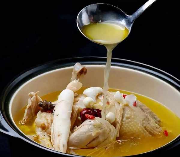 每一隻水煮雞都是采用的是140天的茶花雞,這個月份的雞,肉質鮮嫩,用來燉湯剛好,要是用老母雞,味道肯定沒有這麼好,主要是老母雞的雞油會很多,燉煮出來的湯雖然濃鬱,但是也會多一層油花,喝起來非常的油膩。