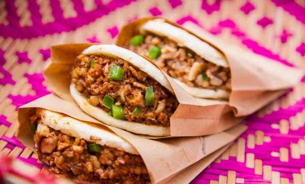“肉夾饃”雖然隻是簡單的“肉和饃”,但是卻出奇的好吃。關鍵就是肉燉得特別到位。肥肉瘦肉相間,軟糯q彈的豬皮,瘦而不柴的肉,肥而不膩的油,配上點辣椒,絕瞭。如果願意多花一塊錢,還能再加上一個鹵制的雞蛋,一套下來,味道簡直就是完美。