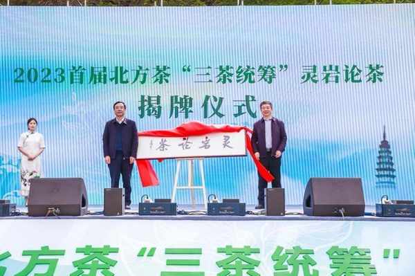 (2023首屆北方茶“三茶統籌”靈巖論茶正式揭牌)