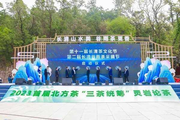 為瞭進一步提升長清茶品牌知名度,實現茶產業和長清區文旅產業的融合發展,推動鄉村振興。在一片濃濃的茶香和禪意中,現場同步啟動瞭第十一屆長清茶文化節、第二屆長清谷雨茶采摘節,並為2023首屆北方茶“三茶統籌”靈巖論茶揭牌。