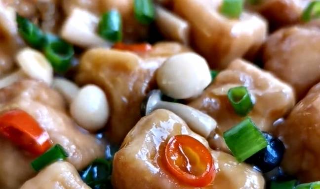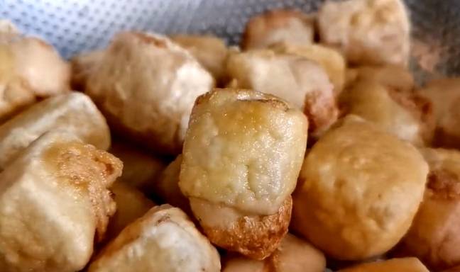 需要註意的地方:先把豆腐切成塊,熱水上鍋焯一下,這一步很關鍵,大傢不要忽略。第二讓豆腐裹上一層面粉和淀粉,這樣下油鍋炸的時候,外皮會酥脆勁道。