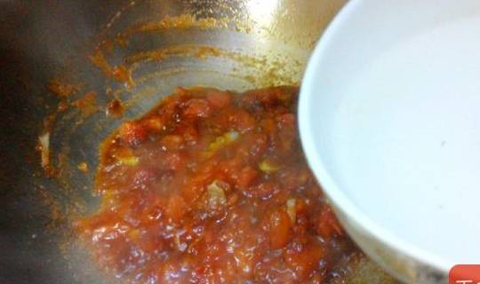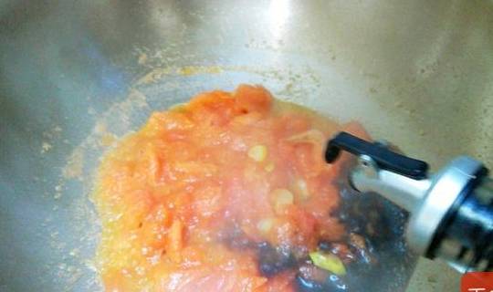 10.番茄炒出沙,加入開水