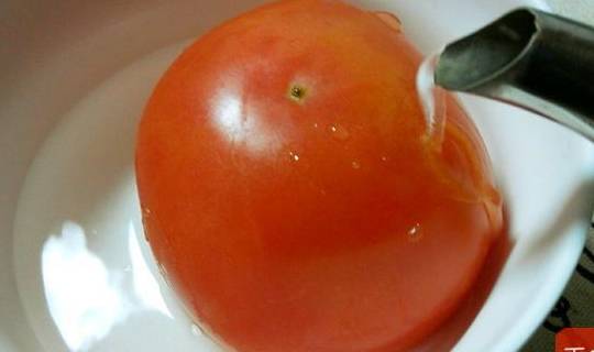 2.番茄用開水燙兩分鐘,將皮剝掉