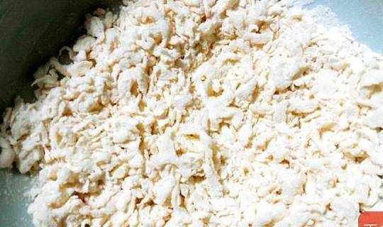 5.將面粉拌成小疙瘩狀