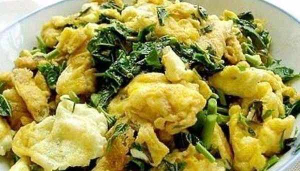 2、 雞蛋打成蛋液,加鹽調味兒加入焯過水的香椿拌勻 炒鍋燒熱放入油,倒入雞蛋液,用鍋鏟攪合至凝固即可 食用