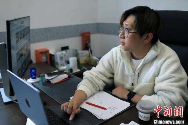 正在剪輯視頻的樸大一。 王磊 攝