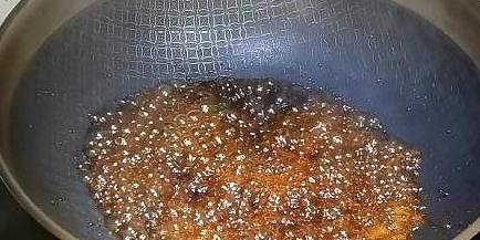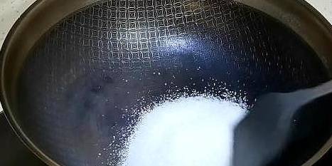 2、鍋洗凈後燒熱,放入白糖,不停翻炒。