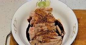 10、蒸好後,用盤子蓋住碗口,再翻轉過來,一盤色香味俱全的燒白就做好瞭。