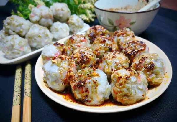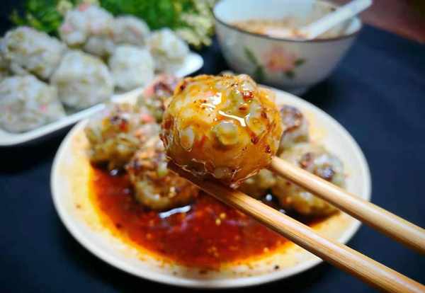9、丸子從鍋中取出,蘸著料汁,吃起來那叫一個香。