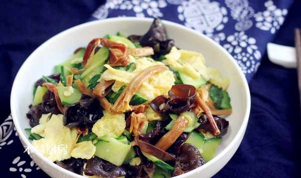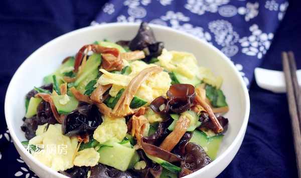 1.做木須炒蛋,黃瓜切成薄片,快速翻炒,可以保持清脆的口感。