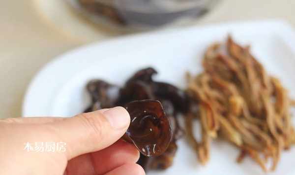 2.泡木耳時候要提前用用冷水泡發,這樣口感脆嫩爽口,才不會綿軟發粘。