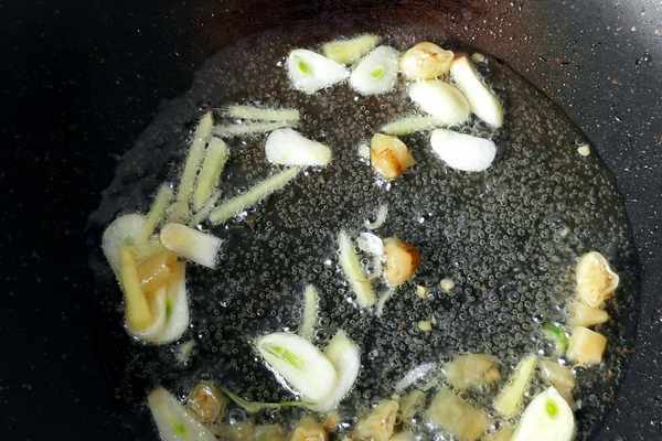 步驟五:鍋內放油,放生薑,大蒜,泡辣椒。