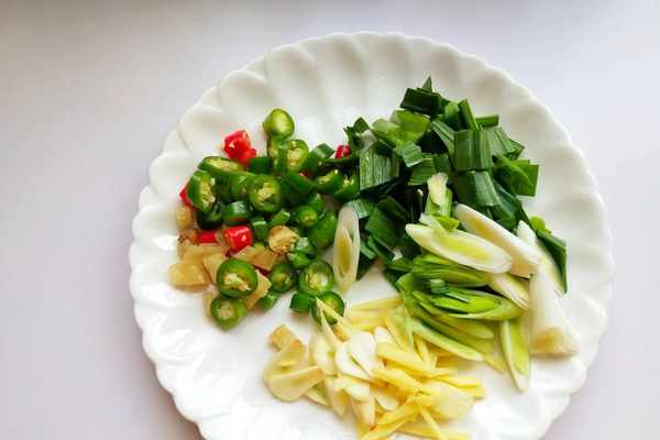 步驟三:生薑,大蒜切碎,杭椒,小米椒切圈,泡辣椒切碎,蒜苗切段。