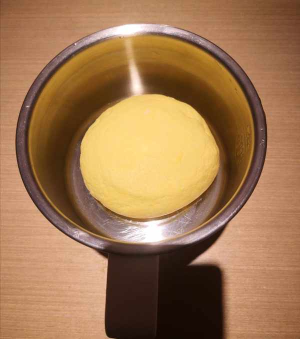 溫水裡加適量酵母,攪拌均勻,使酵母化開。