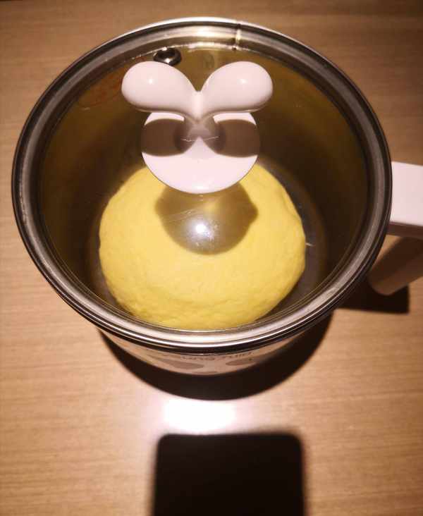 蓋上蓋,發酵至兩倍大,深圳現在溫度較高,需要放冰箱冷藏發酵,把鬧鐘定到凌晨12:30再拿出來常溫發酵,到早晨五六點剛剛好。