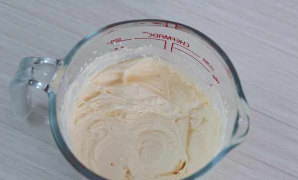 6 細砂糖與淡奶油混合,用電動打蛋器打發到8分發。
