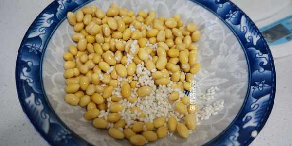 所需食材:幹黃豆70g,糯米30g,清水1000ml,白糖。