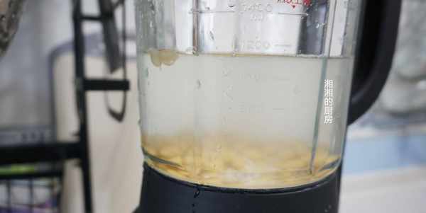 3、破壁機裡加入1000ml的清水,然後把豆子和糯米都加進來,開啟豆漿鍵,大概20多分鐘就完成瞭,出來的豆漿是熱乎的熟豆漿,不需要另外再煮瞭。也不需要過濾,不過如果用的豆漿機,最好過濾一下,口感會更細膩。