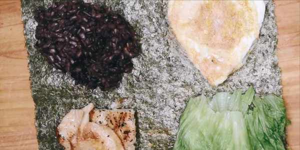 準備食材:大張海苔,雜糧飯,雞胸,雞蛋,生菜