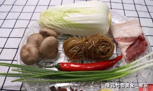 【制作食材】白菜,香菇,五花肉,辣椒,小蔥,粉絲,八角,花椒,生薑。