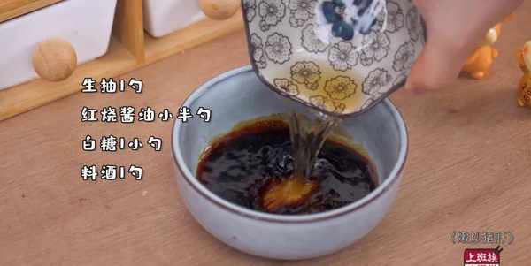 再調個料汁,生抽1勺、紅燒醬油小半勺、白糖1小勺、料酒1勺。