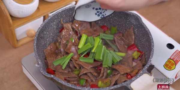 起鍋燒油放入洋蔥,加青紅椒翻炒斷生,加入豬肝、料汁、幹辣椒、青蒜苗大火翻炒20秒,最後淋入水淀粉出鍋。