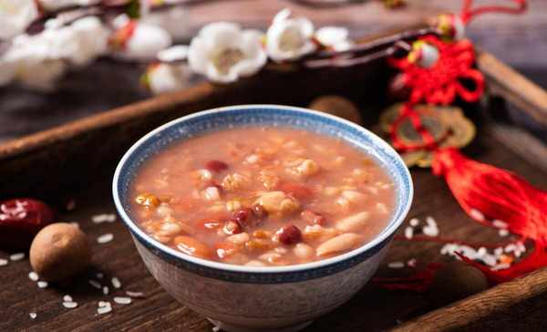 熬制臘八粥的原料至少為八樣,常用的有大米、小米、糯米、大麥、小麥米、薏仁米、紅豆、綠豆、蕓豆、蓮子、白果、花生仁、桂圓、杏仁、瓜子仁、葡萄幹、紅棗、栗子、果脯等。臘八粥的原料豐富,既有五谷雜糧,還可加入豆類、幹果和堅果,充分體現瞭飲食多樣化的思想。臘八粥各種原料中的蛋白質能充分互補,提高蛋白質總體的吸收利用率,而且粥類食品水分含量高,熱量較低,是營養價值較高的食品,四季皆宜。