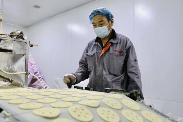 近日,在河北省寧晉縣河渠鎮馬房村一傢食品加工企業生產車間裡,一排排濃鬱飄香的餅幹從百米長的生產線上魚貫而出。“這條生產線日產餅幹10噸,正在生產的是一款冰糖雪梨餅幹,它口感酥脆香甜,深受消費者喜愛。”企業負責人說。