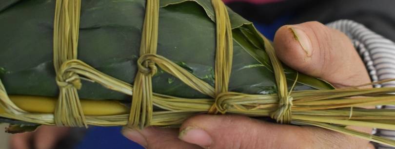 食材準備:小油栗子300g、五花肉500g、糯米850g、粽葉適量、草木灰適量、小蘇打40g、桂皮香葉八角適量、五顆冰糖、蠔油生抽鹽、蔥薑、食用油。