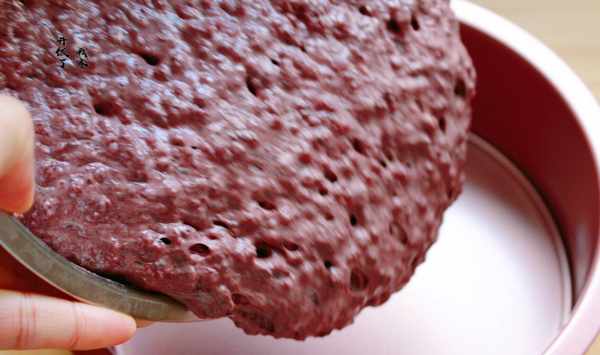 8.將發好的黑米面糊倒入模具裡,因我的模具底部是可以打開的,所以沒有直接在模具裡進行發酵。(如果直接在模具裡發酵會更好)