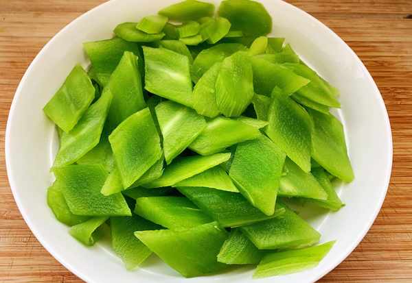 3、萵筍去皮洗凈,切成薄片備用。