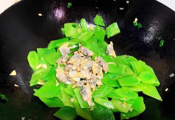 3、蛤蜊肉要最後快要成菜時放入。否則,蛤蜊肉容易炒大,口感不好。