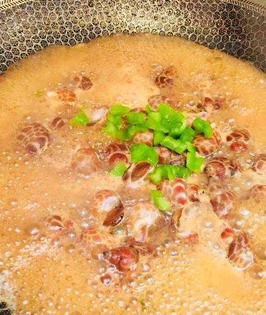 花螺適量、白酒適量、薑適量、蔥適量、豆瓣醬一勺、蒜適量、生抽一勺、小米椒適量