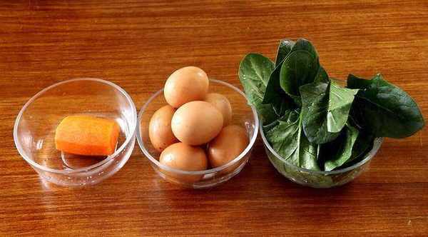 準備食材:菠菜、胡蘿卜、雞蛋、鹽、水