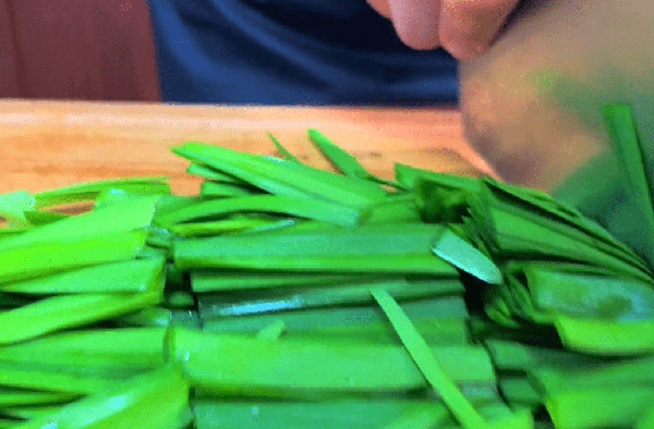 1、 韭菜摘掉黃葉,清洗幹凈,切成小段段;