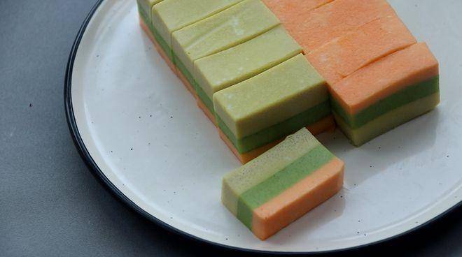 8、 最後蒸好瞭拿出來,修整邊邊,切成塊狀。