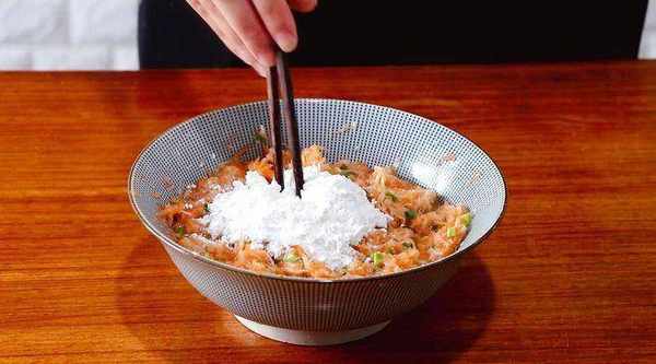 4、 再加入一些鹽和孜然粉,調味混合均勻,再加入一些淀粉;