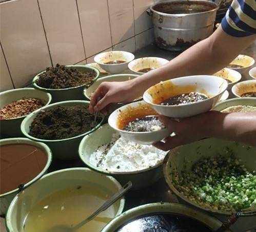 1.將醬油、鹽、味精、雞精、花椒面、辣椒油、豬油、薑水、蒜水、花生碎、榨菜粒打入碗底,加入熬好的高湯。