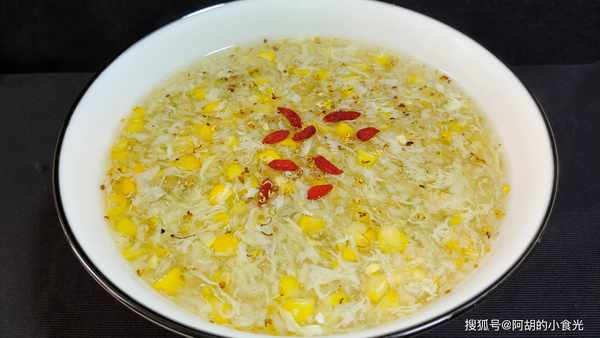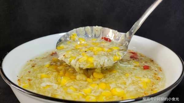 淡淡的桂花和玉米香氣,很是有食欲,喝一口能嚼到玉米粒和馬蹄碎的清脆口感,一碗下肚很是清爽解膩。