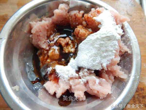 2.切碎,加入料酒和醬油淀粉。抓勻,醃制半小時。