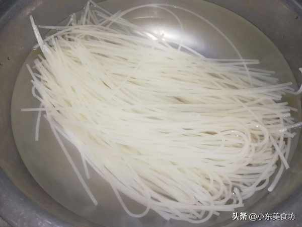 第一步:如果你想吃米粉,重要的是提前10小時將其浸泡在溫水中,使其軟化,這樣就可以很容易地煮熟