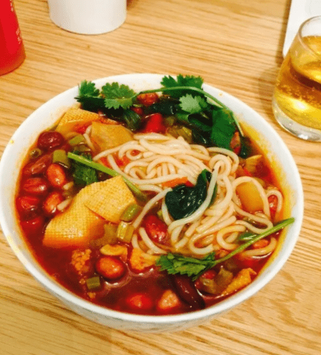 9.起鍋前倒入辣椒油,用蔥花和香菜裝飾即可