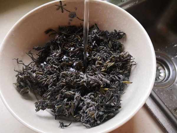 1.先把幹的羊棲菜放到冷水中浸泡1個小時以上,中間換一次水,然後多沖洗幾遍,洗至水變清澈即可。