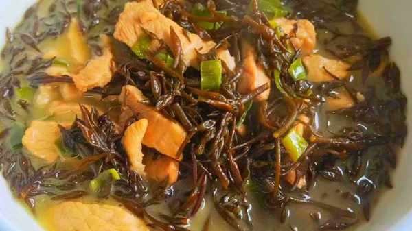 羊棲菜味道十分鮮美,它和排骨或豬肉一起燉,不僅可以提鮮,而且還可以解膩,豬肉吸收瞭它的鮮味,吃起來特別美味,回味無窮!