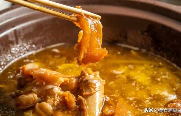碾碎的糯米很容易入味。湯是白色的,味道鮮美,而且不那麼油膩。米粉是熱的,撒在上面的蔥香味四溢。吃飯時,在一雙筷子裡加一小塊食物,這樣既方便吃米粉和蹄子,又方便喝湯。它消除瞭拿著一大碗湯的尷尬外表,所有的男人、女人和孩子都很滿意。