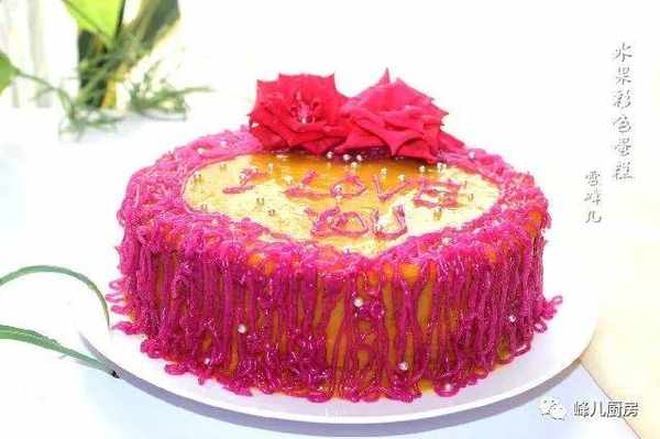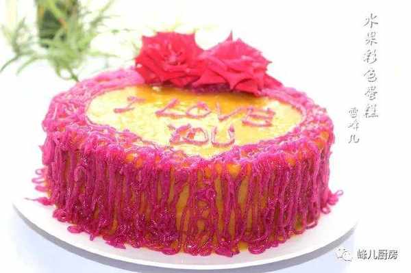 每年傢人過生日,我都是親手做生日蛋糕,也算是送給傢人的溫馨生日禮物,濃濃的親情都融化在生日蛋糕的制作過程中。很多人過生日都喜歡用奶油蛋糕,是不是有點太普通瞭,而且奶油蛋糕的熱量很高,每100克蛋糕奶油含有378大卡的熱量,對於減肥期間的人士,最好少吃,或是不吃蛋糕奶油類制品為妙。這款水果彩色蛋糕一點奶油都不用,火龍果和芒果顏色鮮亮,味道清新,整個蛋糕非常漂亮,絕對比奶油蛋糕超棒。
